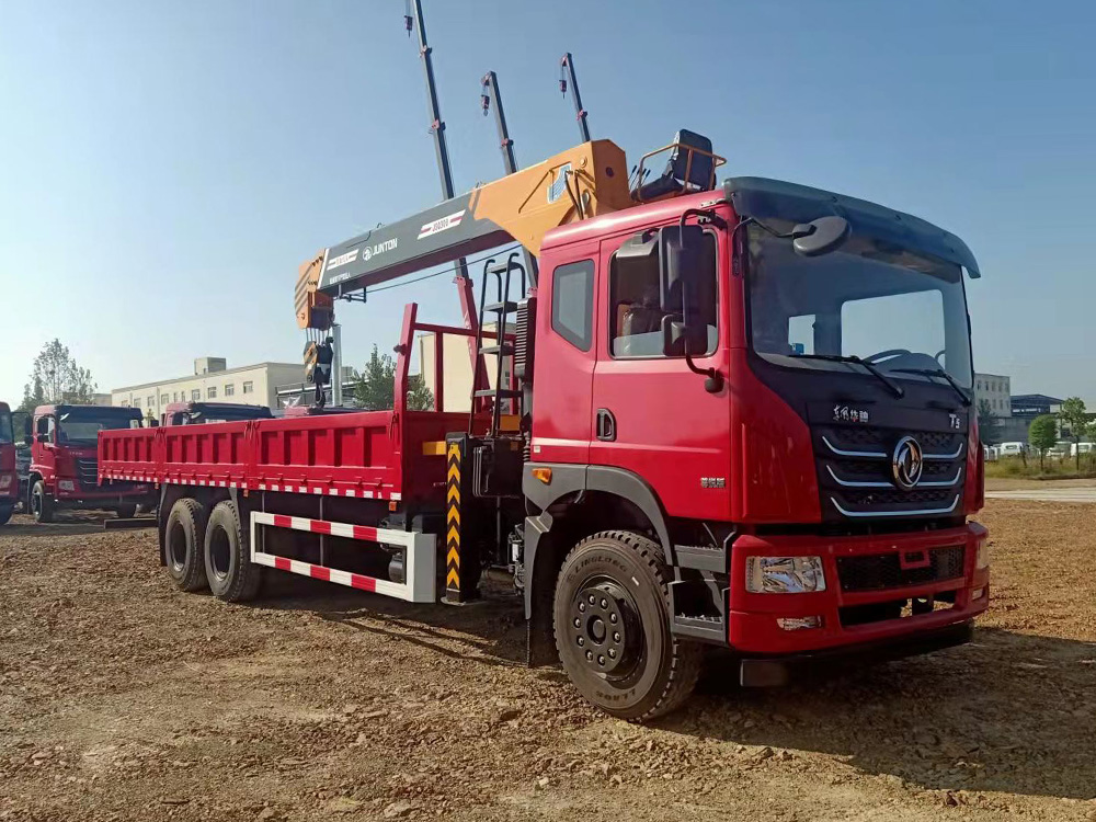 上裝:駿通12噸四節(jié)臂吊機,舉升高度17.5米,工作半徑15.5米,支腿跨距5.8米,吊機二節(jié)臂單出可帶載伸縮5噸,大臂升完可吊1.5噸,自動收鉤,標配通副梁,散熱器,東風(fēng)原廠貨箱