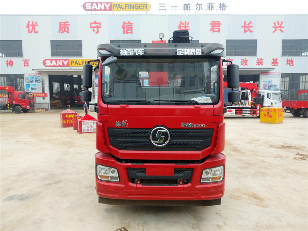 陜汽德龍M3000后八輪 三一12噸4節(jié)臂隨車吊采用陜汽德龍新M3000駕駛室,濰柴300馬力,法士特9檔變速箱(高低檔),帶同步器,前橋7.5噸,后橋16噸輪邊減速橋,308mm(8+5+8)通體三層大梁, 5775+1400軸距 ,12.00R20鋼絲胎,含空調(diào)、中控鎖、氣囊座椅、行車記錄儀、ABS。